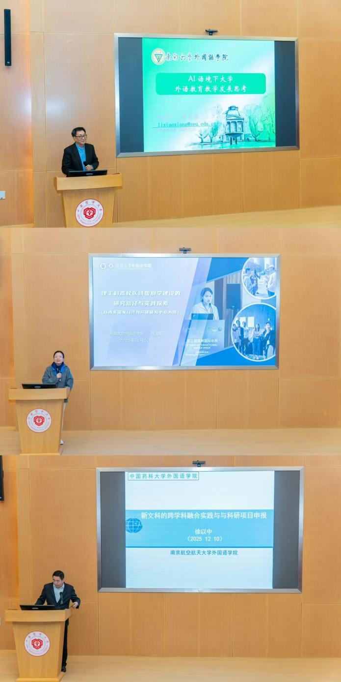 为庆祝办学二十五周年,汇聚学术智慧,共谋发展新篇,1210日下午,外国语学院在江宁校区经管文楼隆重举办专题学术报告会。报告会特邀省内三位外语学界知名专家作主旨报告,学院全体教师到场聆听,报告会由外国语学院院长赵光慧教授主持。