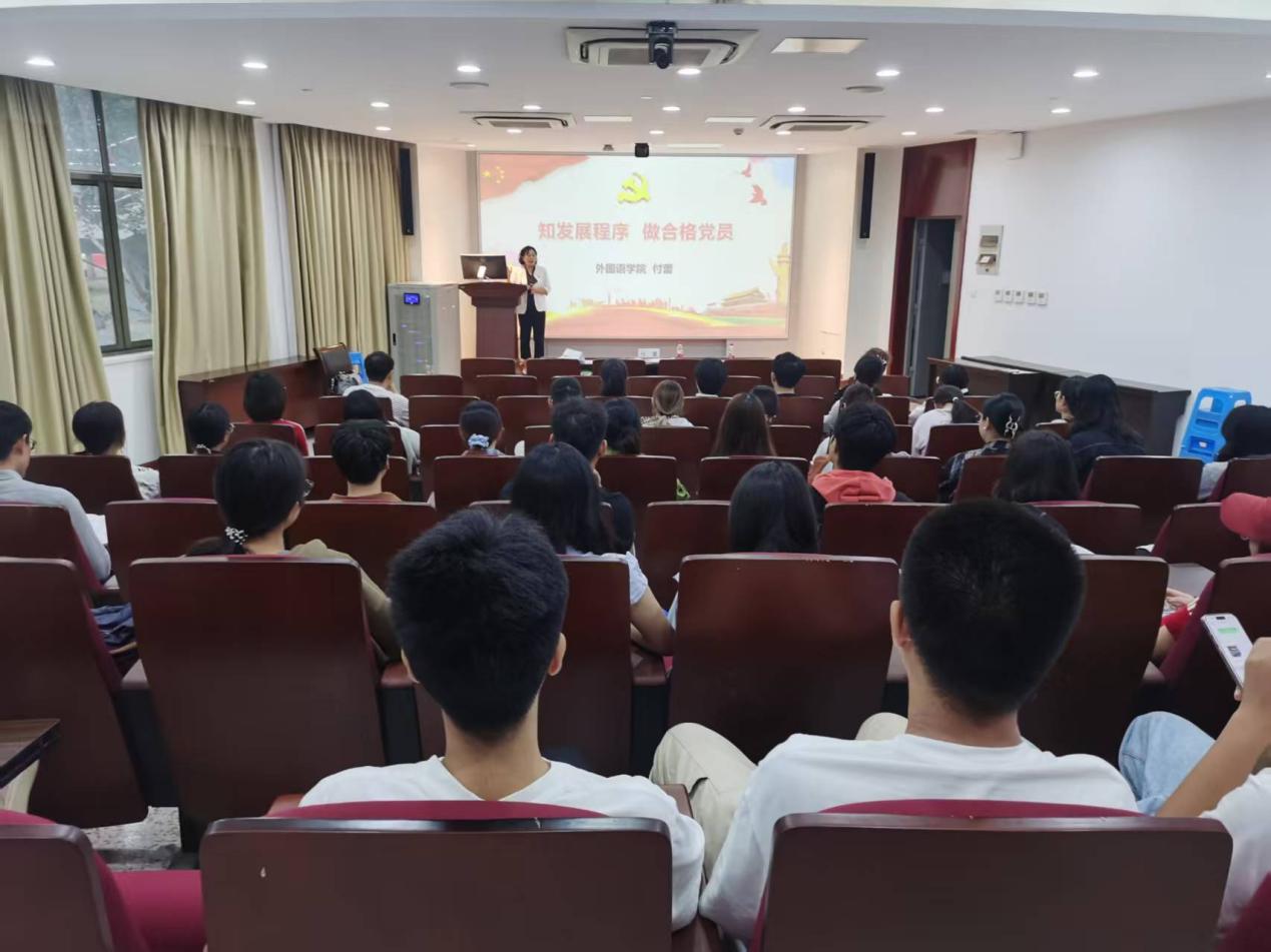 外国语学院党委书记付蕾作题为《知发展程序,做合格党员》的专题讲座。她详细讲解了党员发展的各个环节与标准流程,并结合实际案例,鼓励学员不仅在组织上入党,更要在思想上和行动上入党,努力成长为政治坚定、能力过硬、作风优良的合格党员。