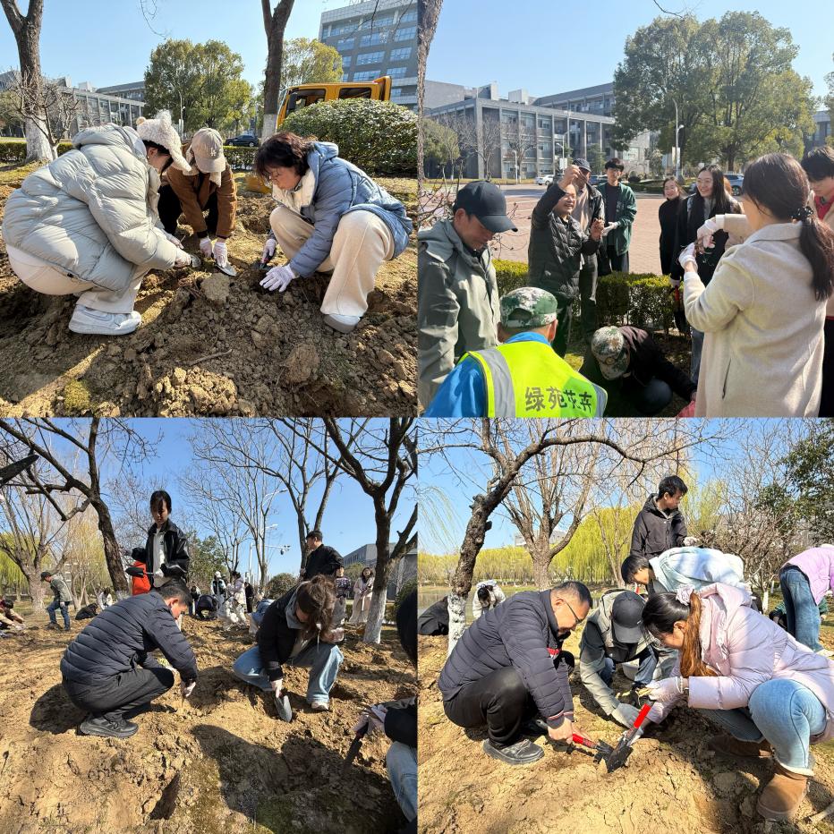 栽植环节,师生分工协作、默契配合,认真细致地完成挥锹挖坑、扶苗对齐、培土压实、浇水灌溉等工序。芍药苗扎根沃土,师生们在劳作间隙亲切交谈,共话学习心得与成长感悟,“良师益友”的深厚情谊在春日校园里悄然升温。